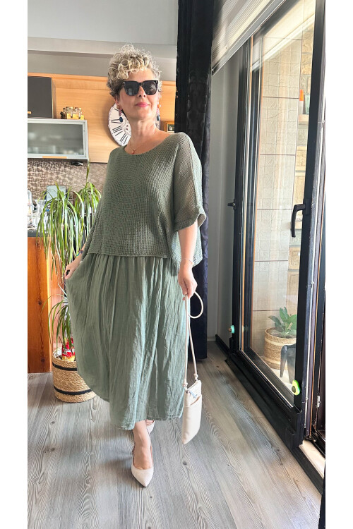 Abitare İtalyan Fisto File Detay Vip Elbise Haki