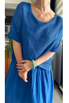 Abitare İtalyan Fisto File Detay Vip Elbise Saks Mavi
