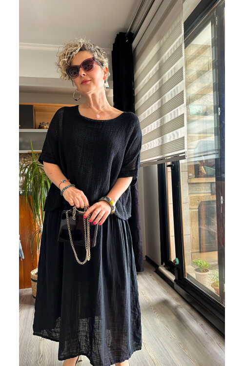 Abitare İtalyan Fisto File Detay Vip Elbise Siyah