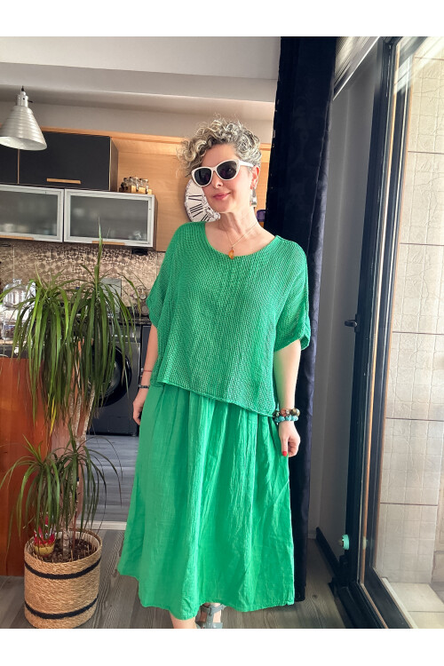 Abitare İtalyan Fisto File Detay Vip Elbise Yeşil