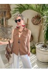 Bellas Artizan Tasarım V Yaka Düğmeli Yelek Kahve