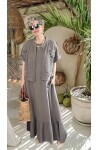 Canne Düz İthal %100 Keten Elbise & Örgü Hırka Takım Fango