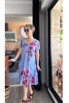 Cello İtalyan Zambak Desenli Elbise Açık İndigo