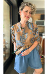 Citta Şal Yaprak Desen İtalyan Gömlek Cappuccino