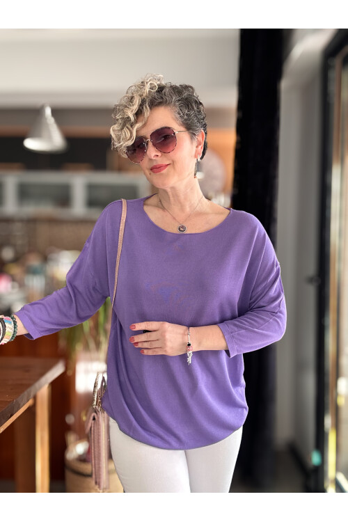 Cuppa Yuvarlak Yaka Mevsimlik Mor Basic Triko