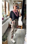 İtalyan Çiçek Desen Vizon Keten Pantolon