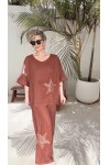 Dolce | Payet Yıldız Detaylı %100 Linen İkili Takım Fango