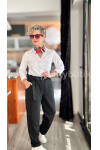 Havuç kesim İtalyan bayan kemerli taş detaylı pantolon, şıklığı ve konforu bir arada sunan mükemmel bir seçenek. Bu pantolon, kaliteli taş detaylı kumaşı sayesinde yumuşak bir dokuya sahipken, havuç kesim tasarımı ile zarif bir siluet oluşturuyor. İtalya'nın zarif modasının etkilerini taşıyan bu pantolon, hem gündelik hem de özel günlerde rahatlıkla tercih edilebilir.