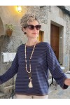 Fabri Çizgili İnce Triko Bluz - Kahve & Beige