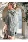 Doğal dokusu ve modern siluetiyle öne çıkan Grande, rahat formu ve arka pul detaylarıyla sade şıklığı farklı bir seviyeye taşır. Hafif ve nefes alan pamuk keten dokusu sayesinde gün boyu konfor sunarken, kapşon detayıyla sportif ve şehirli bir stil yaratır.
