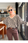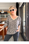 Hanna İtalyan Leopar Desen Simli Bluz Gri