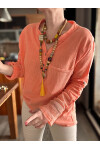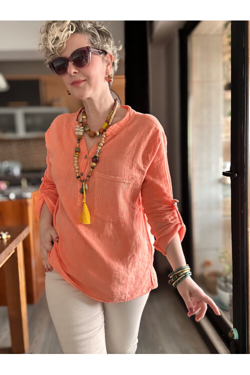 Jalli Tasarım Sırt File Detay Gömlek Turuncu