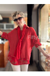Julli İtalyan Gömlekli Bluz Triko Takım Nar Çiçeği