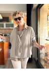 Julli İtalyan Gömlekli Bluz Triko Takım Vizon