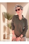 Lerso Polo Yaka Tasarım Triko Bluz Haki