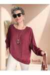 Düz desenli simli dokusu ve bordo rengiyle zamansız, şık bir görünüm sunar. Hem günlük hem de şık kombinlere kolayca uyum sağlar.