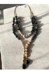 Doğanın en seçkin taşlarını bir araya getiren bu özel tasarım kolye, Madagaskar akikin derin, sıcak tonları ile su incisinin doğal ışıltısını ustalıkla buluşturuyor. Kısa formuyla boyun hattında zarif bir vurgu oluştururken, sade şıklığıyla her stile kolayca uyum sağlar.