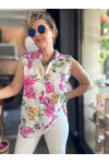 Massa Lilyum Desen Sıfır Kol İtalyan Bluz Beyaz