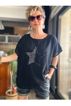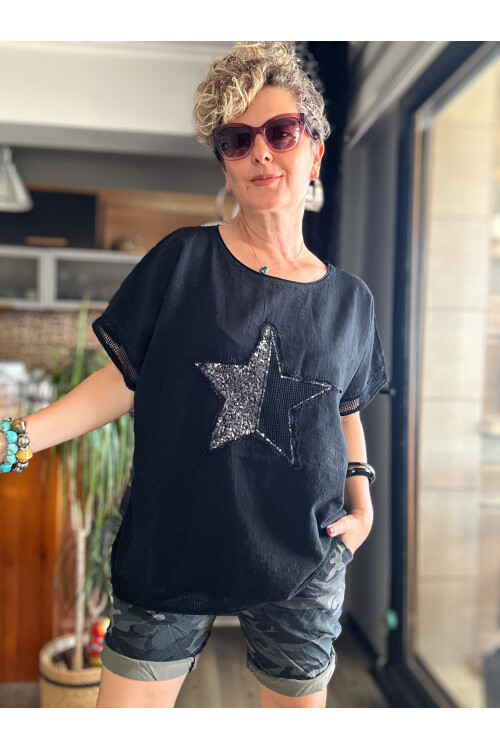 Mesa Yıldız Pul Detay Etek Ucu File Bluz Siyah