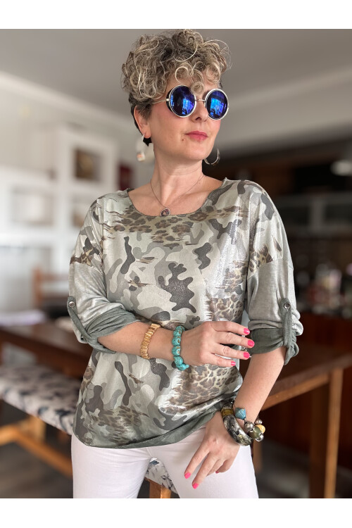 Miranda İtalyan Varak Baskı Kamuflaj Bluz Haki