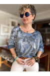 Moda dünyasında şıklığın ve zarafetin adresi burası!  İtalyan Varak Kamuflaj Desen Kol Düğme Detay Triko Bluz, stilinize ferah bir dokunuş katacak.