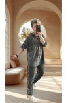 Muffin İtalyan Şönil Leopar Detay Takım Lacivert
