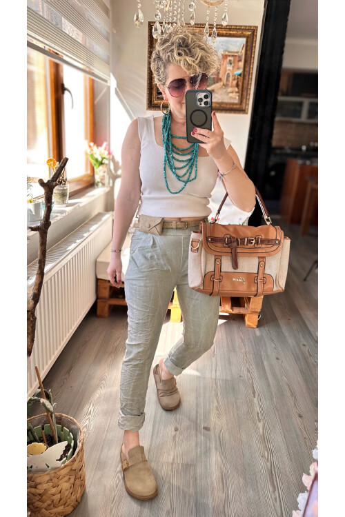 Nappa İtalyan Çanta Kemerli Sihirlli Pantolon Çağla