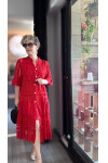 Nessi İtalyan Brode Gömlek Elbise Kırmızı