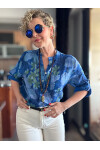 Netti Zambak Desen İtalyan Gömlek Saks