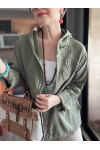 Papel Nakış Detaylı İpli Kapşonlu Hırka Ceket Haki