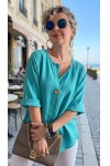 Peppino İtalyan Tahta Düğme Detay Bluz Yeşil