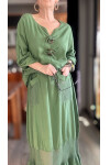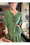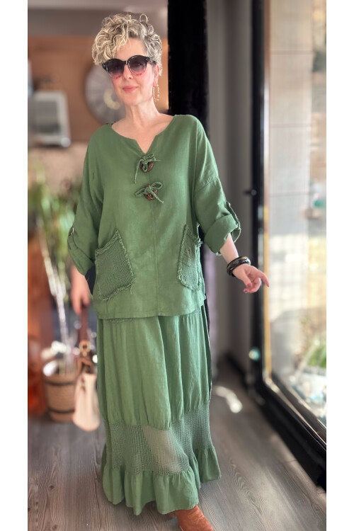 Pronto Vip Tasarım File Detay Etek Bluz Takım Haki Yeşil