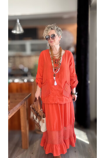 Kalite ve şıklığı bir arada arayanlar için kesinlikle tavsiye ediyorum. File Etek Detay Bluz Düğmeli Cepli Özel Tasarım Pamuk Bayan Etek Bluz Takım ile tarzınızı yansıtmak artık çok daha kolay!