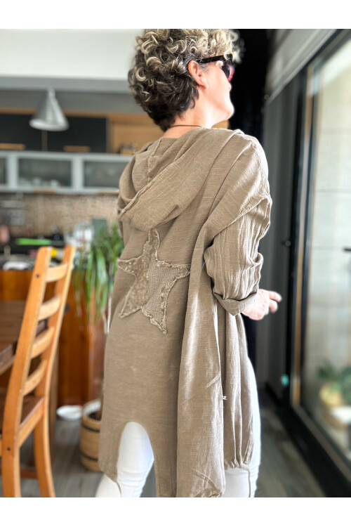 Que Tasarım Arka Star Pul Detay Kapşon Ceket Vizon