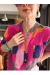 Senso Patchwork Desen İtalyan Gömlek Fuşya