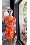 Tassi İtalyan Lotus Desenli Elbise Turuncu