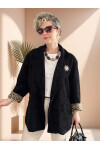 Rahat ve dökümlü oversize kesimi, hareket özgürlüğü sağlarken vücudu sarmayan formu sayesinde gün boyu konfor sunar. Geniş yakası, tek düğmeli kapanışı ve kol uçlarındaki leopar detaylarıyla fark yaratan bu ceket, ister günlük kombinlerde ister özel davetlerde tarzınızı tamamlar.