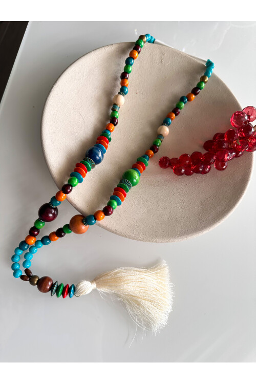 Turkuaz Ziko Tahta Tasarım Renkli Kolye
