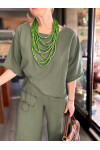 Bu takım, yaz günlerinin sıcaklığında hem şık hem de konforlu bir seçenek sunuyor. Hafif kumaşı ile ferah bir deneyim yaşarken, Vintage detaylarıyla da zarafetinizi artırabilirsiniz. Hem günlük kullanımda hem de özel anlarda sizi her zaman şık gösterecek.