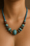 Twinkle Pirinç Cam Etnik Kolye Turkuaz