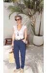 Bel kısmı toparlayıcı, paçalara doğru hacim kazanan balon kesimi sayesinde vücut hatlarını sıkmadan dengeli ve rahat bir siluet sunar.