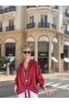 Viva Önü Bağlamalı İtalyan Kesim Linen Gömlek İndian Red
