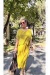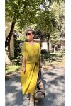 Abitare İtalyan Fisto File Detay Vip Elbise Hardal