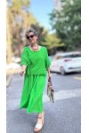 Abitare İtalyan Fisto File Detay Vip Elbise Neon Yeşil