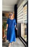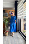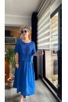 Abitare İtalyan Fisto File Detay Vip Elbise Saks Mavi