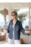 Afro İtalyan Vip Pul Payet Detaylı Keten Gömlek Ceket