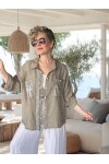 Afro İtalyan Vip Pul Payet Detaylı Keten Gömlek Ceket