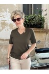 Auro Metal Toka Detaylı V Yaka Triko Bluz Kahve