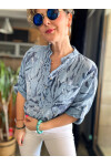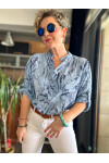 Bergamo Spiral Yaprak Açık İndigo Desenli İtalyan Gömlek