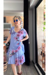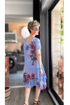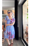 Cello İtalyan Zambak Desenli Elbise Açık İndigo